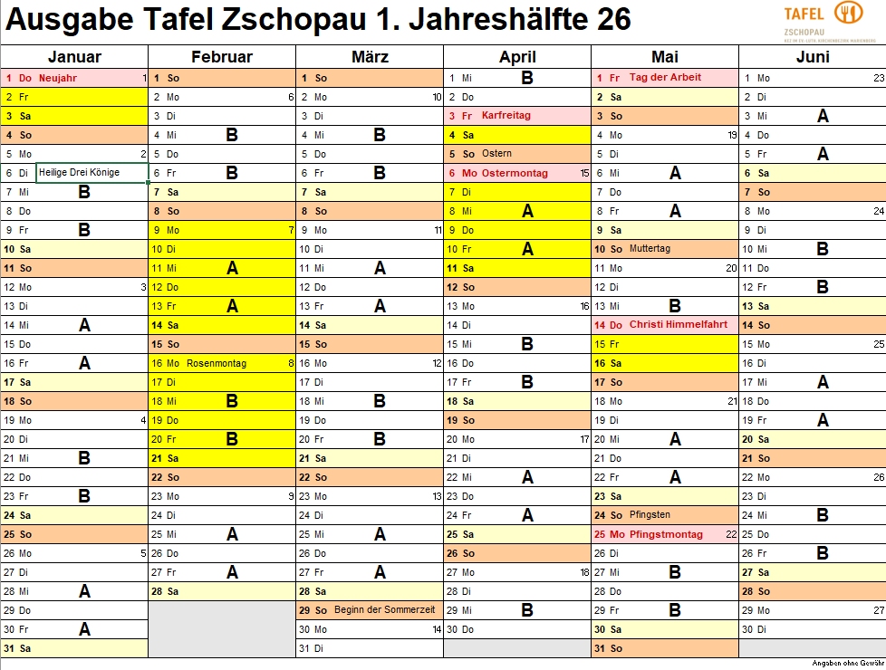 Jeder Haushalt darf einmal alle zwei Wochen zur Tafel kommen. Dafür bekommt jeder ein A oder B auf seinen Ausweis.